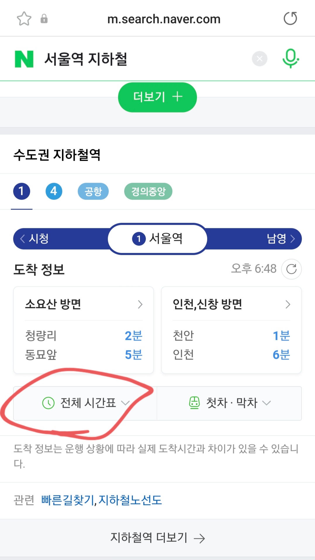 네이버에 '서울역 지하철'을 검색하면