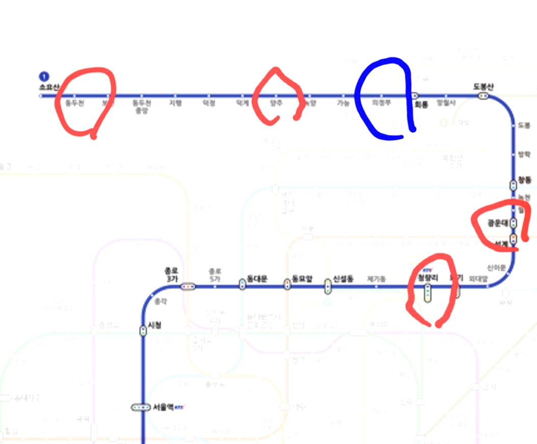 그렇다면 청량리, 광운대는 타면 안 되고 양주 또는 동두천으로 가는 지하철을 타야 한다!