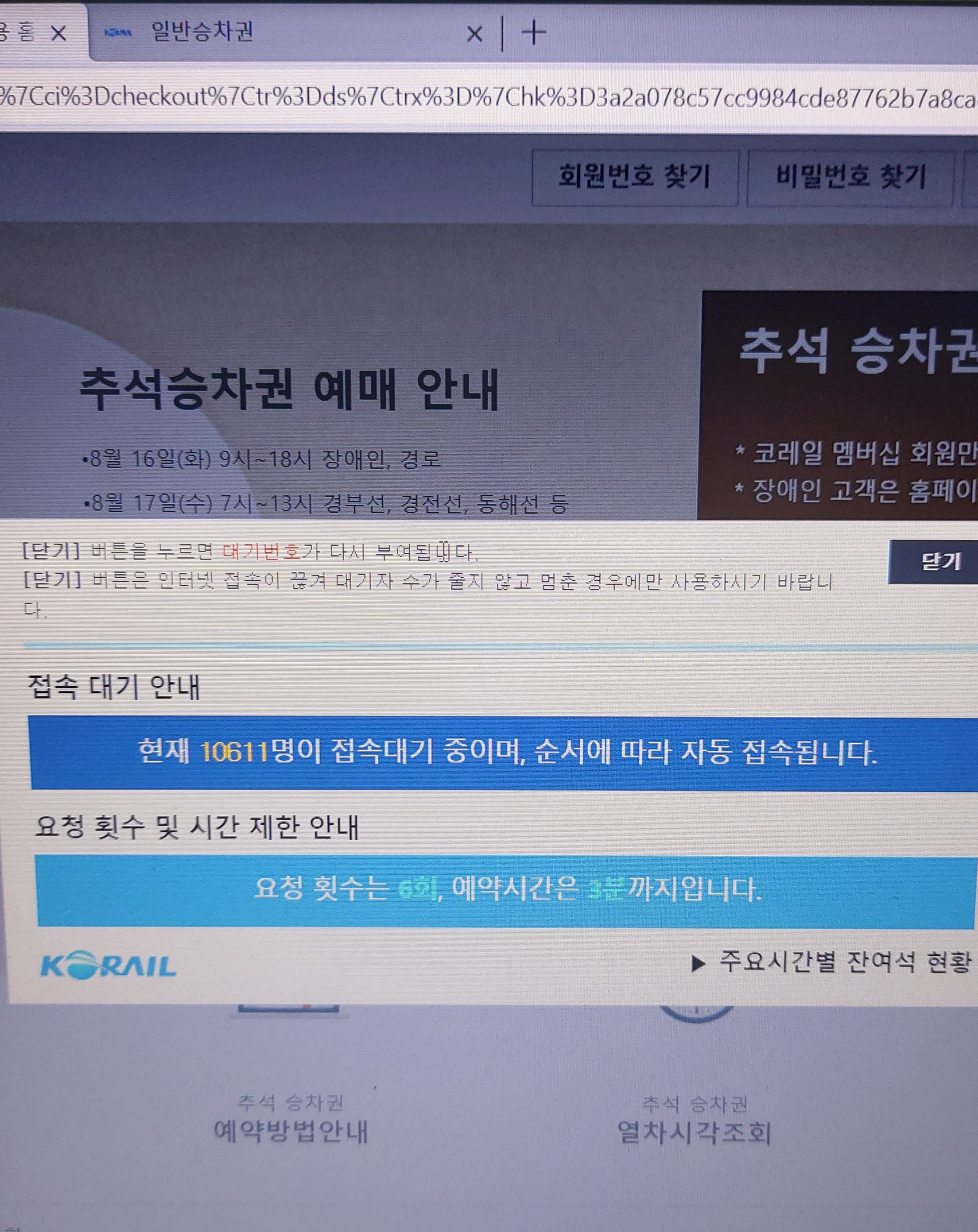 그래서 코레일은 따로 날과 시간을 정해 선착순으로 기차 예매를 하도록 한다.