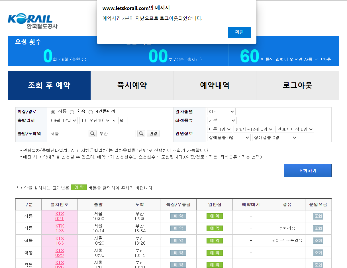 ※ 필자도 기차 예매를 해야 해서 3분 동안 정신이 없어 지금부터의 스크린 샷은 재연한 것이니 참고 바랍니다.